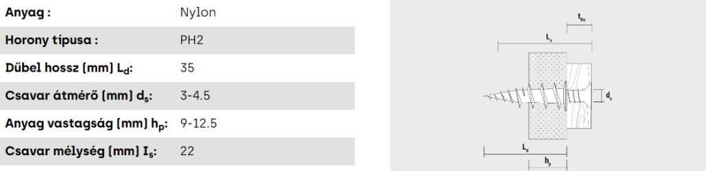 GKD önfúró nylon gipszkarton dűbel