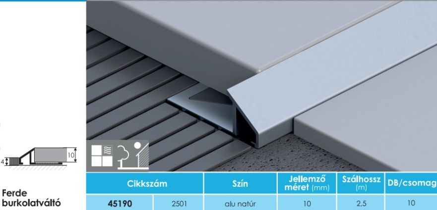 Élvédő Ferde burkolatváltó alu 2,5 m