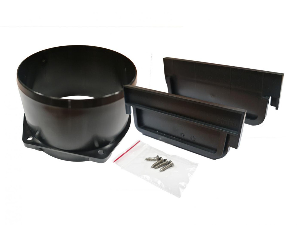 Folyóka kiegészítő készlet, melynek része 2 db műanyag véglezáró elem és 1 db függőleges bekötőcsonk 110 mm-es csatlakozással.